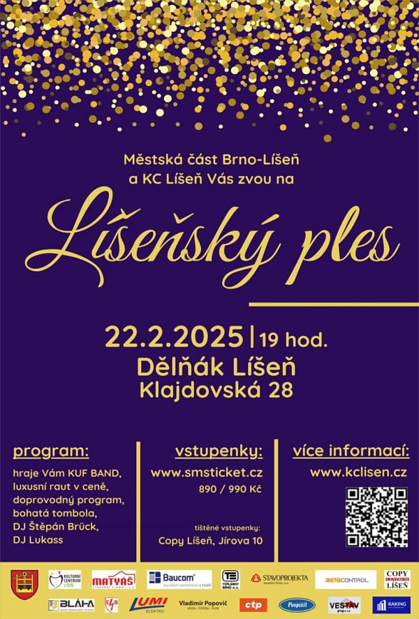 Pod příznačným a vše vypovídajícím názvem Líšeňský ples 2025, který se uskuteční pod patronátem pana starosty Břetislava Štefana, se skrývá vše, co můžete od tradičního slavnostního hřebu plesové sezóny očekávat.